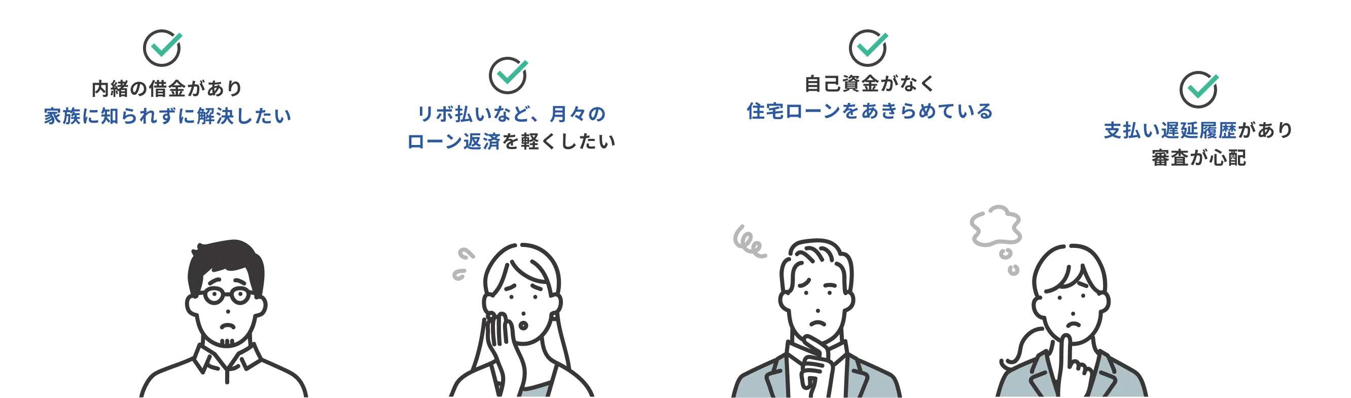 今ある借入れをまとめて毎月の支払いを見直しながら、無理のない返済計画でマイホーム購入をサポートします。まずはお気軽にご相談ください。